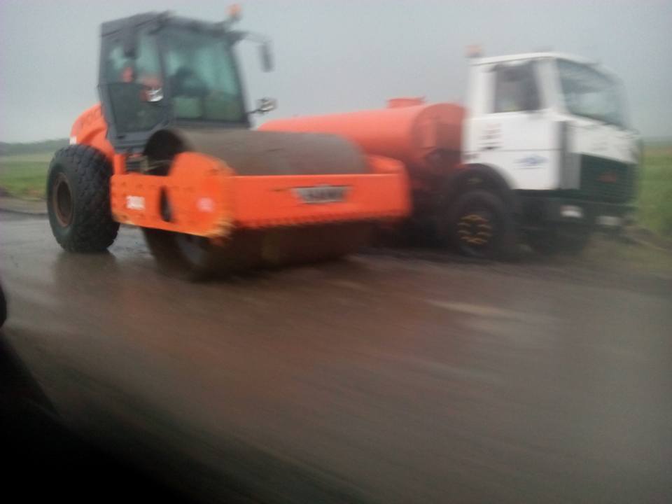 Ремонтные работы на трассе были временно приостановлены из-за погодных условий.