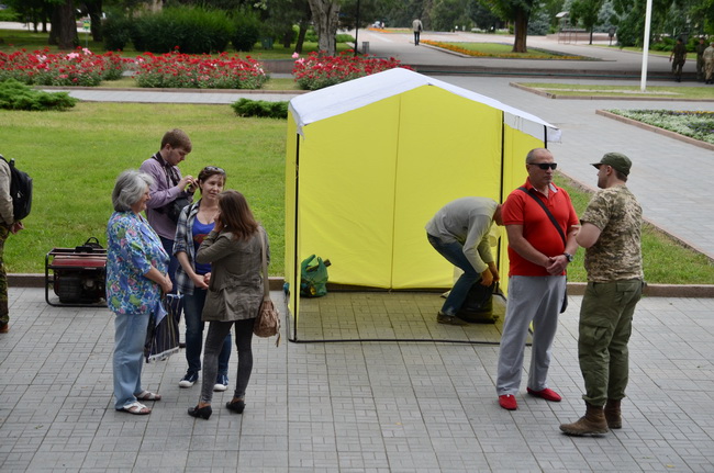 Митингующие установили палатку у здания облгосадминистрации, где будут собирать подписи за отставку Мерикова и уже привезли бензиновый генератор.