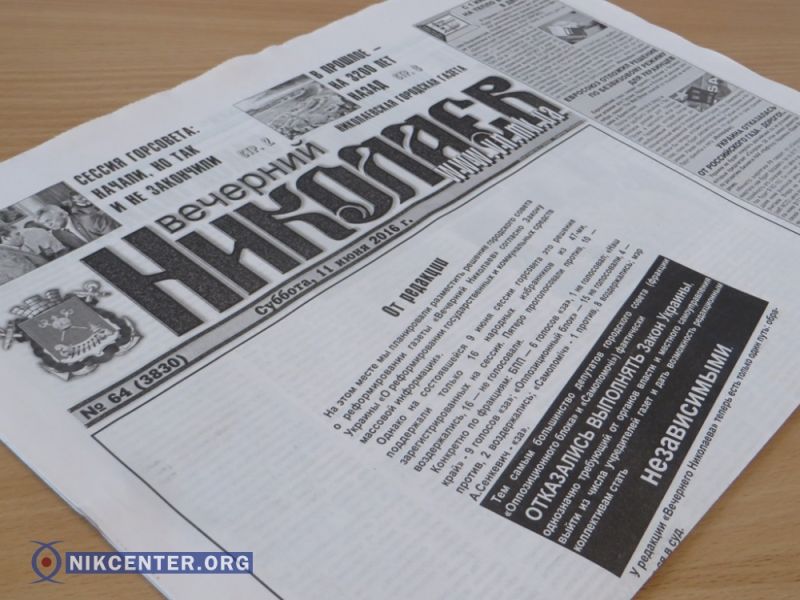 «Вечерний Николаев» перейдет на самоокупаемость — горсовет вышел из состава учредителей