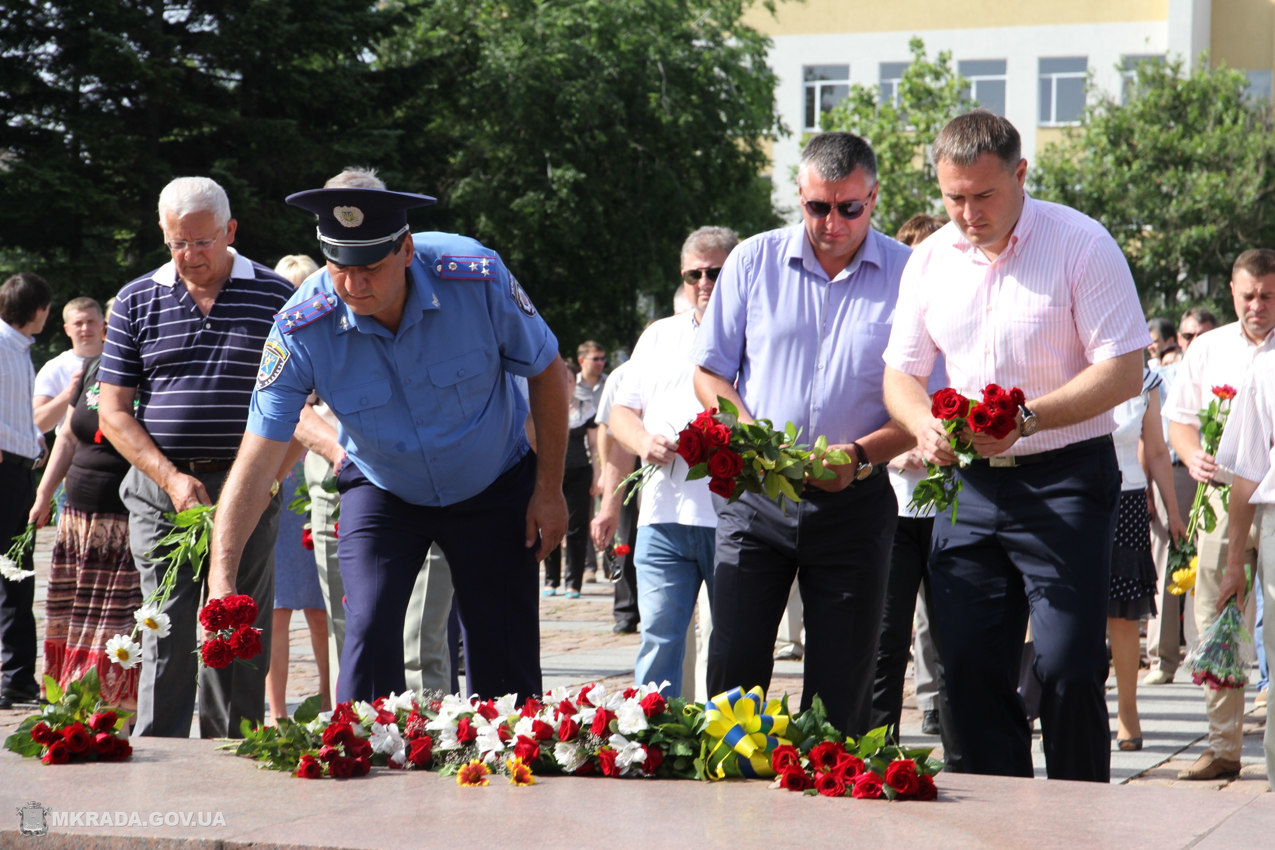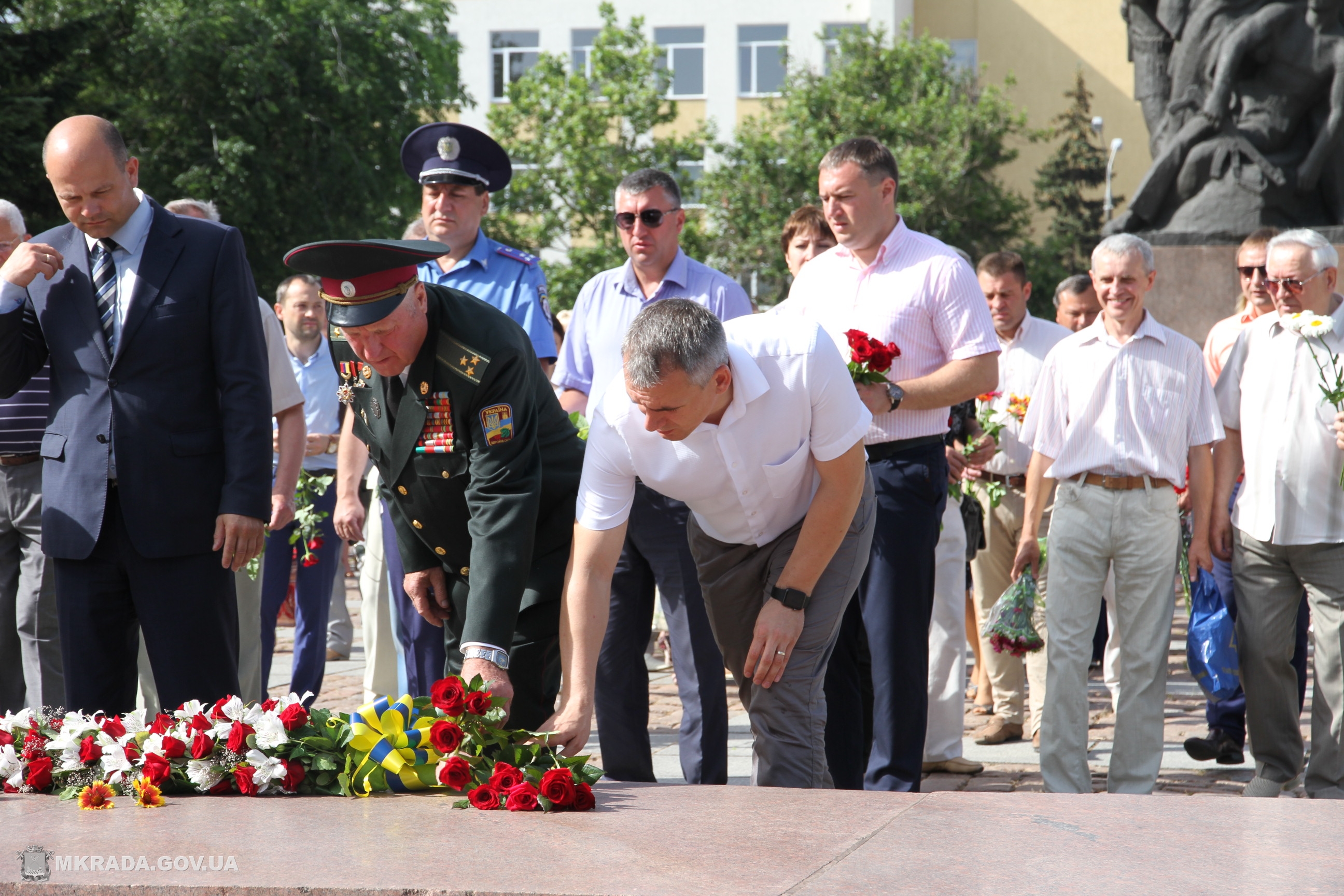 С самого утра в центре города у мемориального комплекса в честь героев — ольшанцев собрались николаевцы, представители областной и городской власти, чтобы возложить венки и цветы к подножию памятника в знак почтения невинно погибших.
