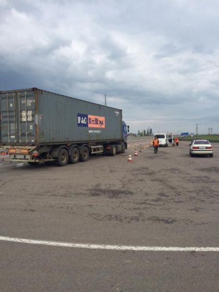 Водители фуры пытались заблокировать дорогу на Николаев и поджечь весовой комплекс