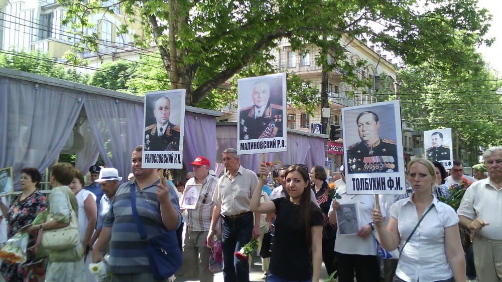 В этот раз все прошло практически мирно: горожане прошлись по ул. Соборной с плакатами и фотографиями полководцев советской армии, а также своих погибших родственников.