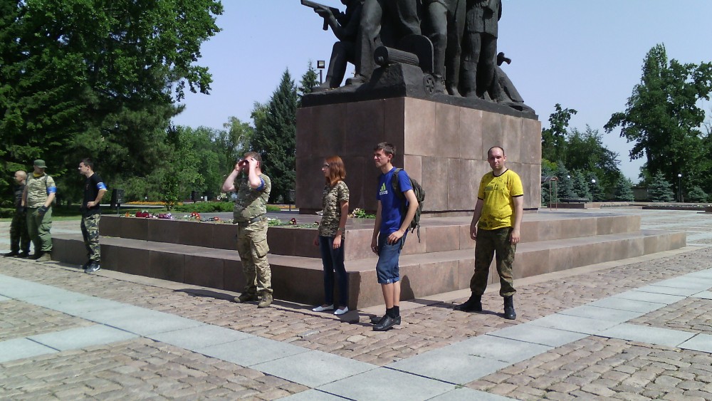 В это время памятник охраняли бойцы АТО и патриоты, чтобы, по их словам, не было провокаций.