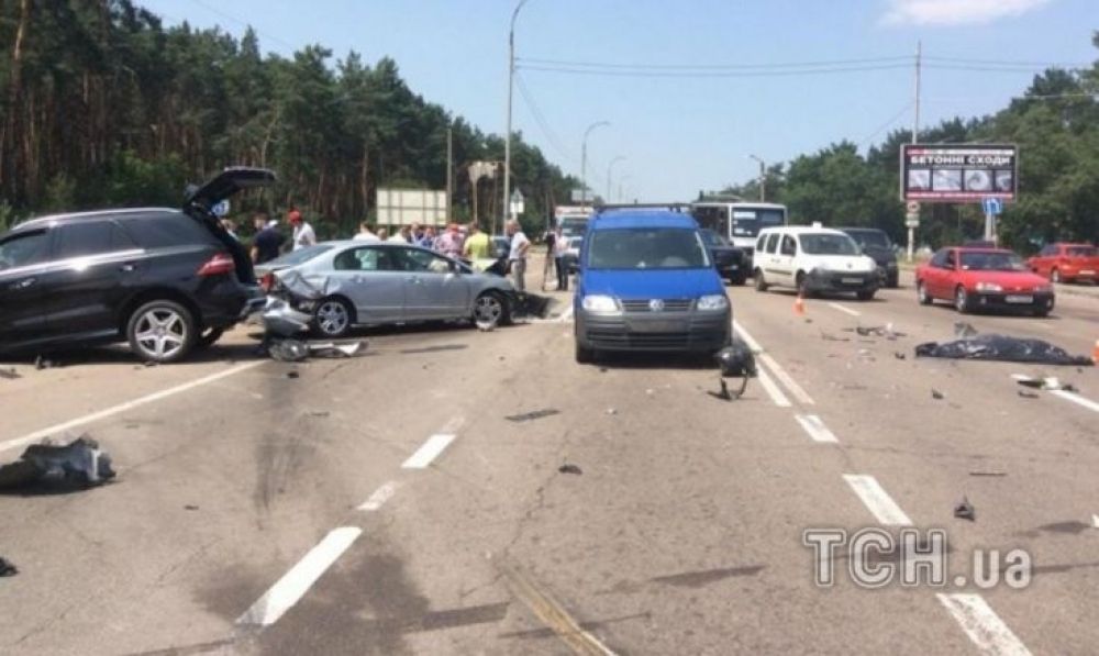 Как сообщает ТСН, водитель скутера поворачивал с дамбы в сторону Киева на перекрестке. В это время на самом перекрестке из Киева на светофоре стояли автомобили Honda и Volkswagen. В этот момент на встречной полосе, по предварительной информации, водитель элитного внедорожника Mercedes-Benz обогнал авто, которое стояло впереди, и выехал на встречную полосу. В результате водитель скутера и его пассажир были сбиты.