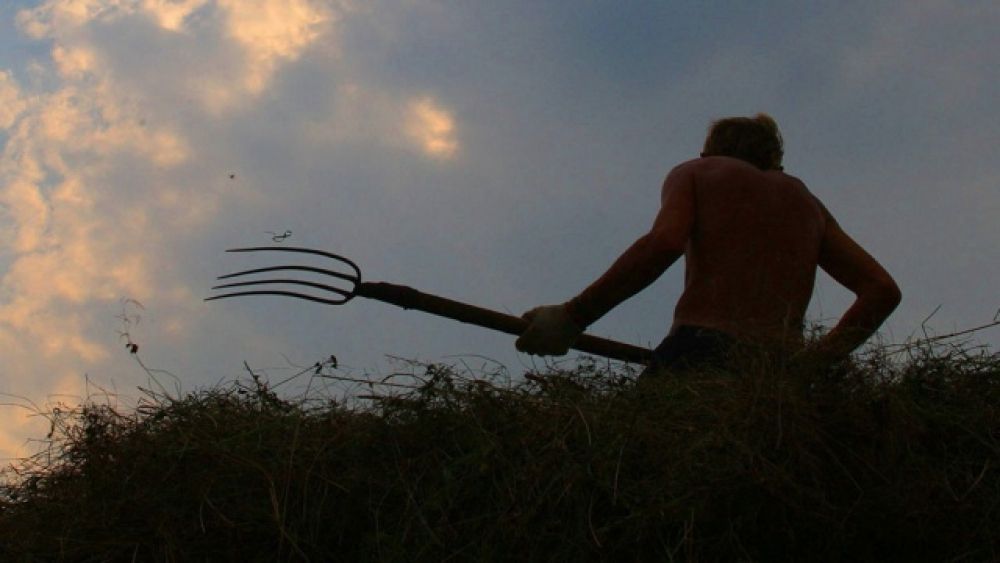 По предварительным выводам экспертов, мужчина совершил самоубийство нанеся себе в участок под грудной клеткой удар хозяйственными вилами.