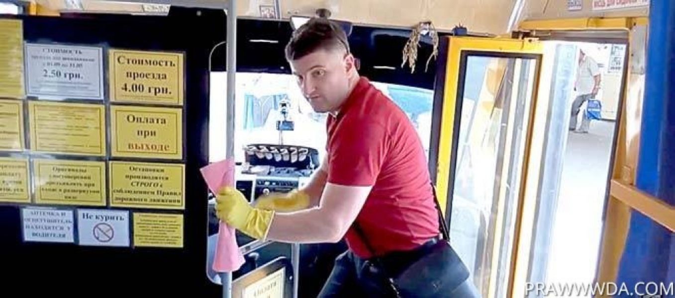 В рамках акции молодые люди протирали поручни в салонах автобусов «Белизной», пишет издание "prawwwda".