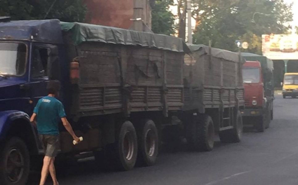 Скопление большегрузных авто усложнило движение транспорта в центре Херсона