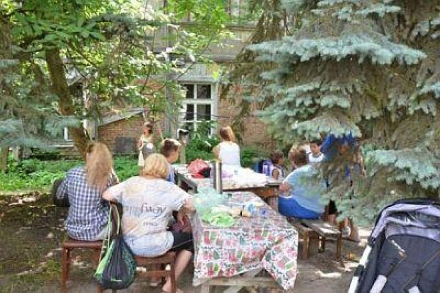 Около сотни переселенцев заняли заброшенное здание в центре Одессы. Еду готовят на улице. Спят на деревянных поддонах.