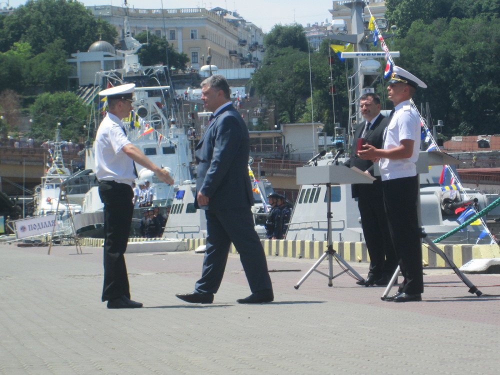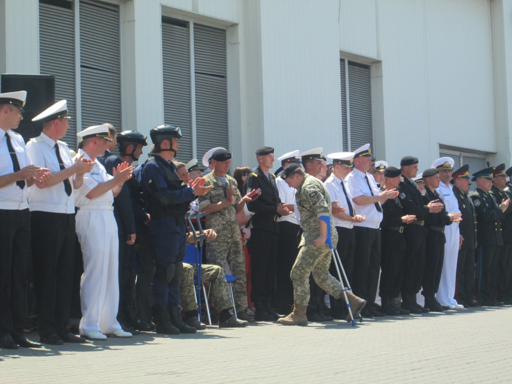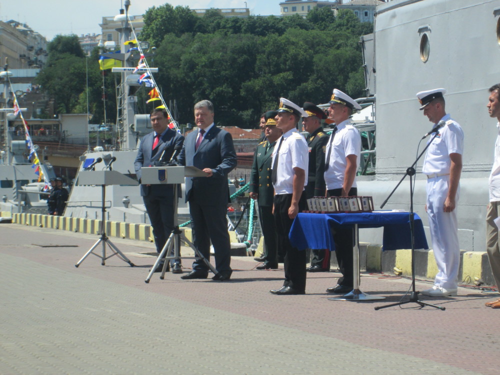 Президент вручил награды и медали 14 наиболее отличившимся матросам, сержантам и офицерам ВМС. Так, за добросовестное и безупречное служение украинскому народу, высокий профессионализм, образцовое выполнение воинского долга и по случаю праздника медалью «За воинскую службу Украине» были отмечены капитаны 3 ранга Сергей Карлаш и Виталий Спиридонов, старший сержант Олег Плотников, старший мичман Родион Шемировский и подполковник Александр Сурайкин. Медаль «Защитнику Отечества» глава государства вручил матросам Михаилу Агибалову, Виталию Беспалову, Андрею Данилюку и Николаю Павленко, младшему сержанту Сергею Богороду, сержанту Андрею Липкину, старшему матросу Капитону Ли и прапорщику Сергею Похитайло. Старший механик судна «Золотоноша» дивизиона кораблей охраны и обеспечения Южной военно-морской базы ВМС ВСУ Владимир Довагань получил медаль «За труд и доблесть».