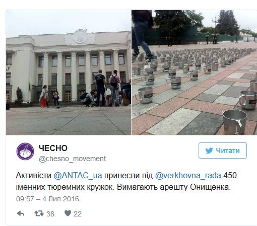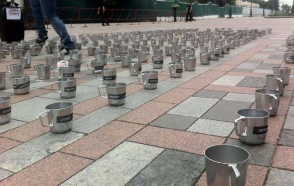 Сообщается, что активисты принесли под здание ВРУ 450 именных тюремных кружек.