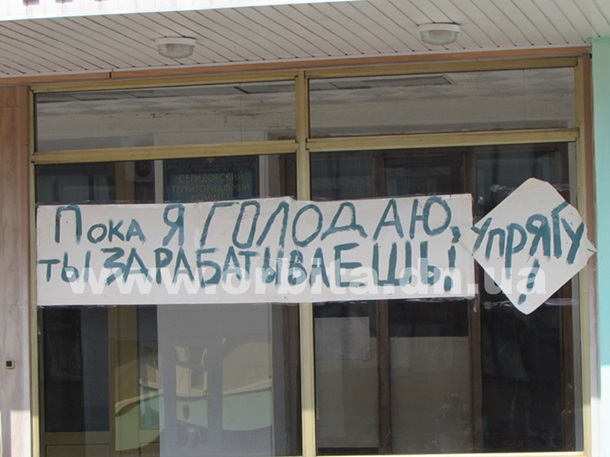 "Медики также осмотрели других голодающих. Они обнаружили значительно повышенное давления (более 180 единиц) у инициатора акции, председателя местной организации Национального профсоюза горняков Селидово и Новогродовка Виктора Трифонова, — сообщил председатель организации. — Врачи сделали ему укол и попытались уговорить прекратить голодовку, чтобы не рисковать здоровьем, но профсоюзный лидер отказался".