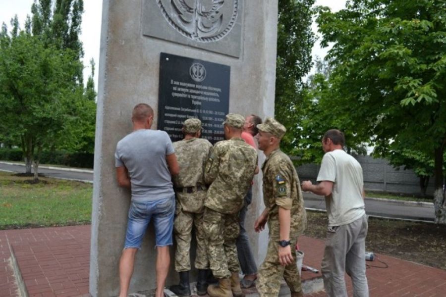 В Николаеве волонтеры установили на мемориал памяти морских пехотинцев плиту с именами погибших в АТО бойцов.