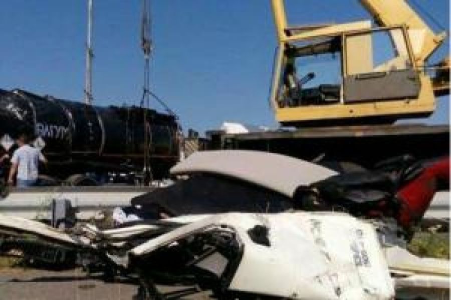 В результате удара топливный бак дал течь, и топливо растеклось по дороге.