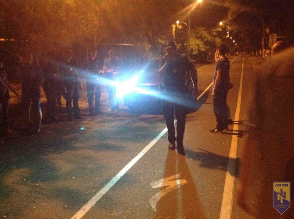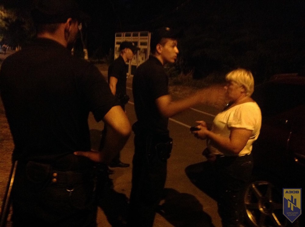 "Азовцы" также вызвали несколько патрульных нарядов полиции к месту проведения акции, чтобы правоохранители составляли протоколы на нарушителей.