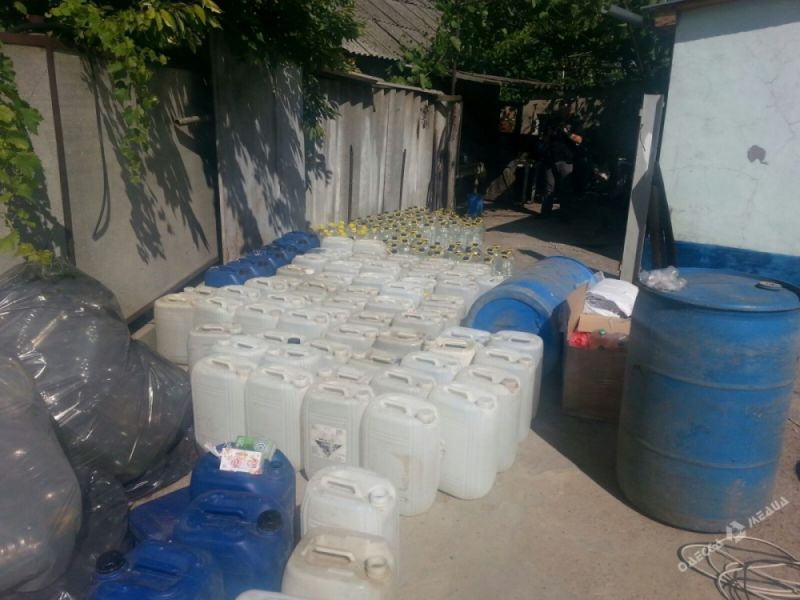 В частном доме в Рени Одесской области изъяли почти 2 тонны незаконного коньяка и 2,5 тонны спирта для его изготовления.