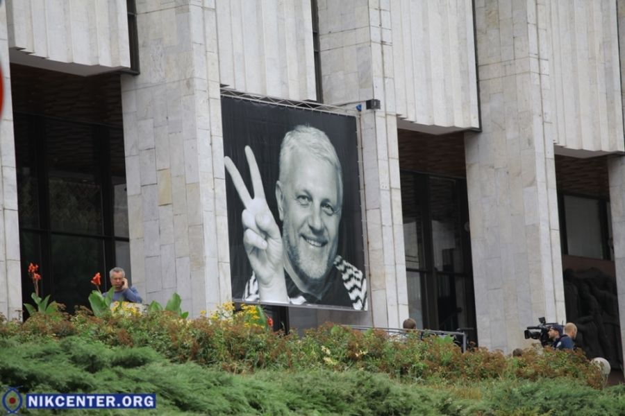 Прощание с журналистом Павлом Шереметом, погибшим 20 июля во время взрыва автомобиля, проходит сейчас в Киеве в Украинском доме.