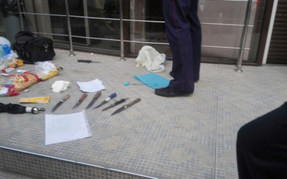 Наши корреспонденты сообщают, что при злоумышленнике были найдены около десяти видов различных ножей. Мужчина находился в неадекватном состоянии.