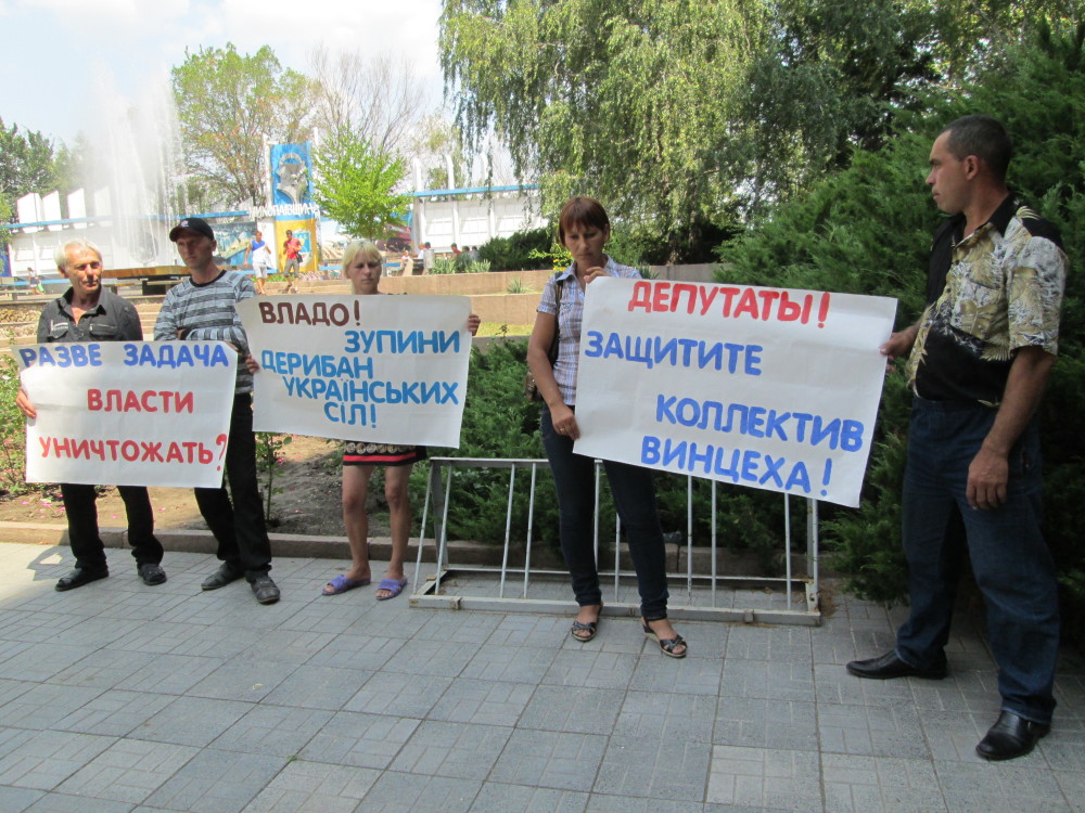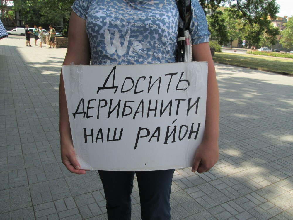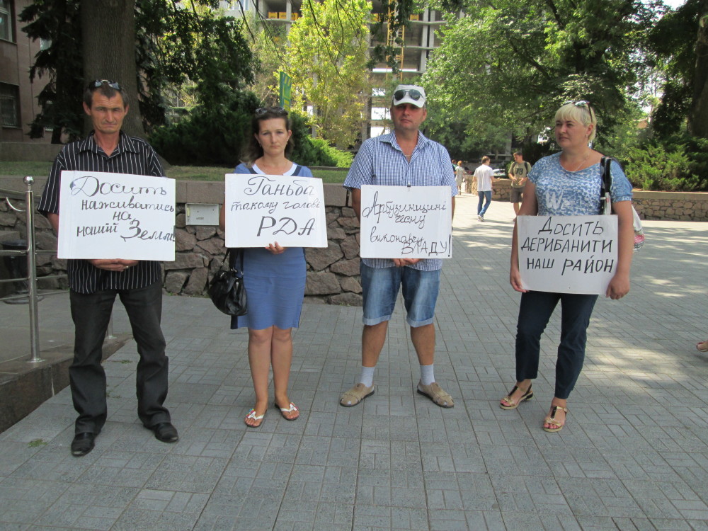 Люди требовали увольнения главы Арбузинской РГА Александра Палия, который, по словам активистов, работает для галочки — нет никаких изменений в районе; другая группа людей отставивала руководство Владимирского винцеха, расположенного в Казанковском районе. Пикетирующие просят защитить их от беспредела, который творит руководство регионального Фонда государственного имущества — незаконно уволен директор винцеха, а теперь Фонд хочет "прибрать" к рукам предприятие.