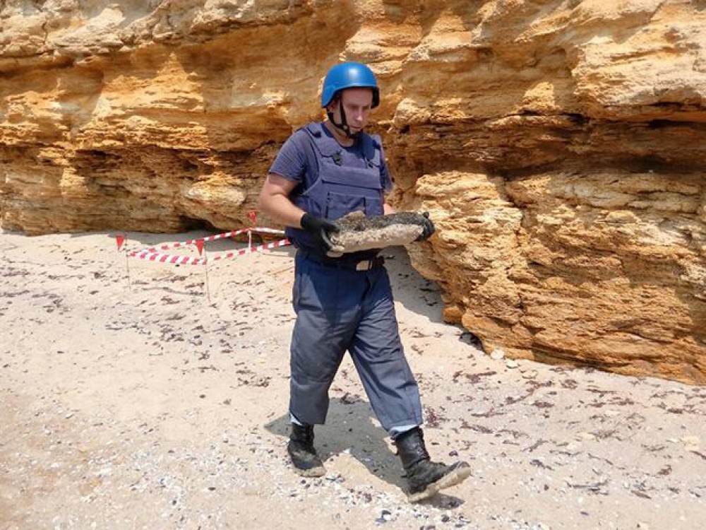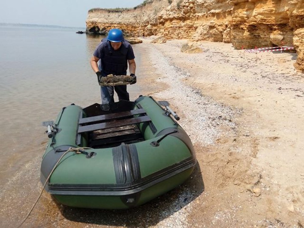 Об обнаружении опасной находки на побережье о. Березань Очаковского района стало известно от пользователей социальной сети facebook, которые прислали сообщения на страницу начальника Главного управления Максима Грицаенко.