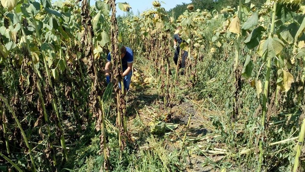 На Николаевщине среди подсолнуха обнаружили около 1000 кустов конопли
