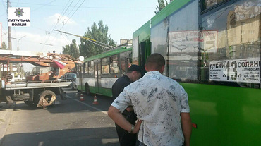 В Николаеве возле рынка «Колос» столкнулись маршрутка и грузовик-вышка