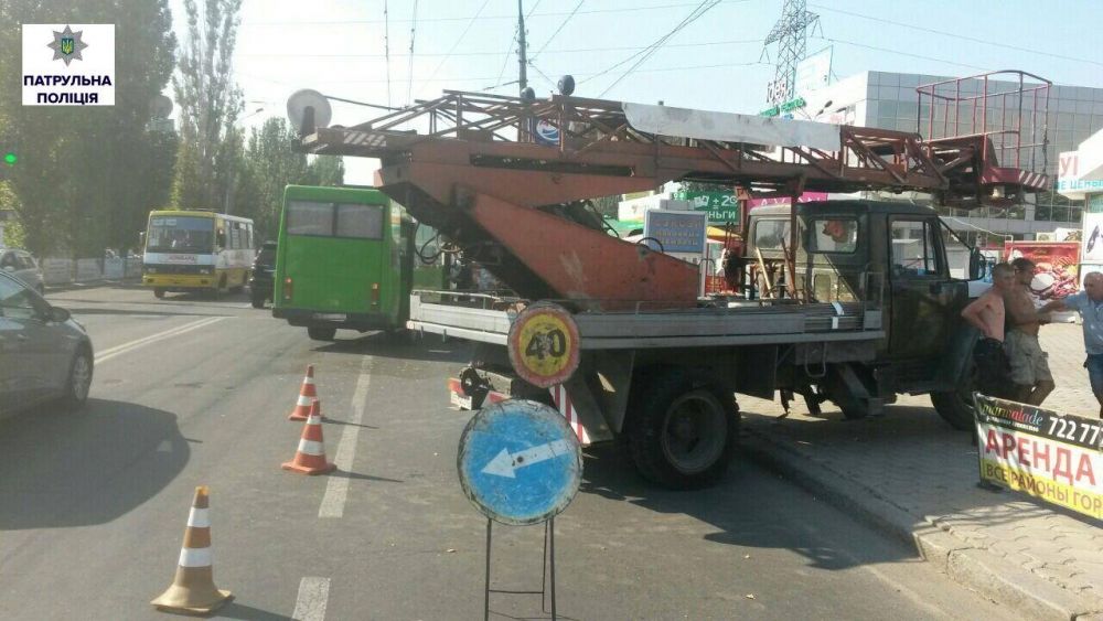 В Николаеве около 16:00 ч 10 августа на проспекте Мира столкнулись маршрутное такси «Рута» и грузовик-вышка «ГАЗ-3307».