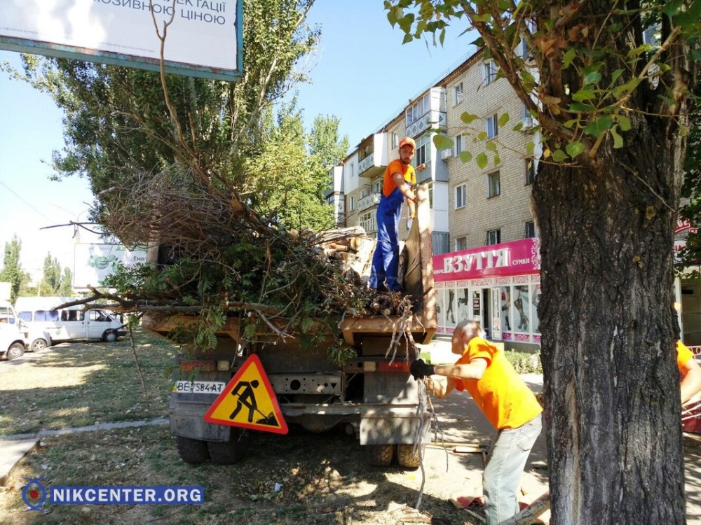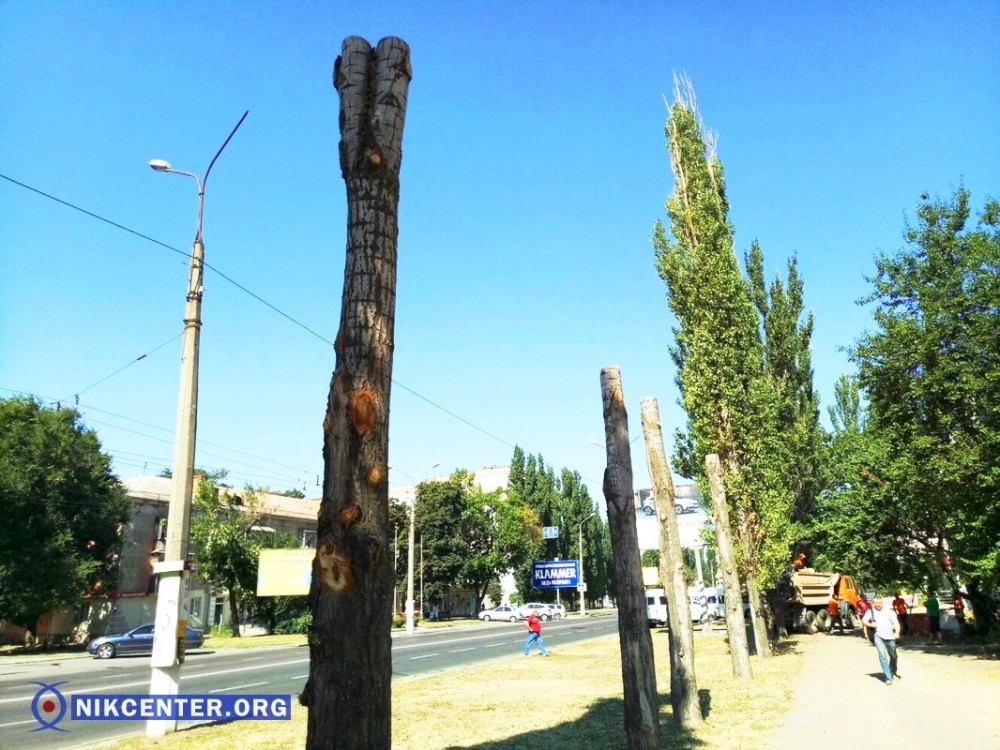 В Николаеве вдоль проспекта Мира кронируют многолетние тополя, оставляя от них лишь голые стволы и пеньки.