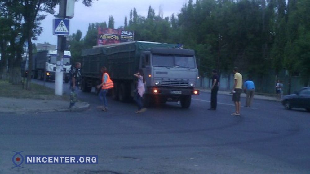 Сегодня вечером николаевские активисты заблокировали движение большегрузного транспорта по проспекту Богоявленскому.