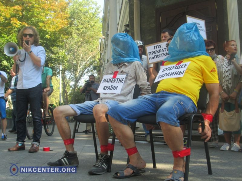 Сегодня, 17 августа, под стенами Одесской прокуратуры активисты «Демальянса» устроили акцию — перфоманс в защиту Национального антикоррупционного бюро Украины.
