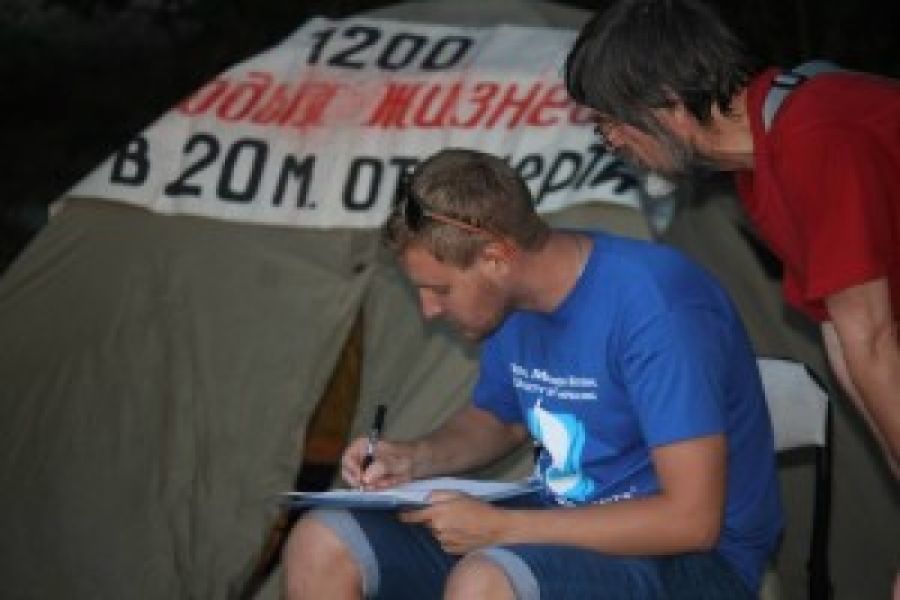 — Вот такая палатка теперь стоит на месте, где хотят построить заправку. Пройти мимо нее по проспекту не удается никому из пешеходов, и теперь каждый проходящий узнает, что на этом месте собираются строить заправку, и часть людей удивляется, потому что этого не знала вообще и ужасается от этой новости.