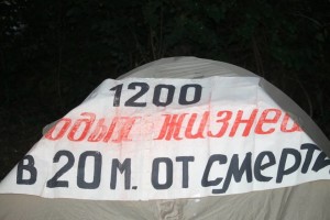 — Вот такая палатка теперь стоит на месте, где хотят построить заправку. Пройти мимо нее по проспекту не удается никому из пешеходов, и теперь каждый проходящий узнает, что на этом месте собираются строить заправку, и часть людей удивляется, потому что этого не знала вообще и ужасается от этой новости.