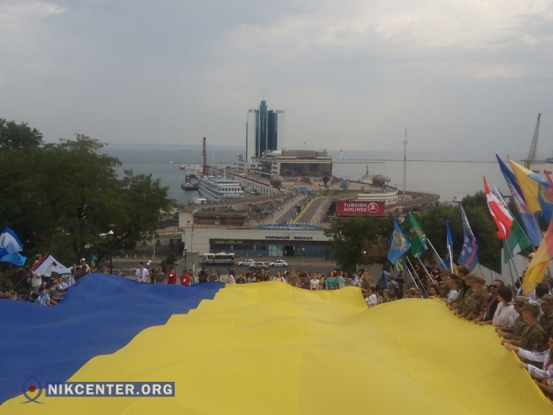 Сегодня, 23 августа, в Одессе на Потемкинской лестнице несколько десятков людей развернули 25-метровый флаг.