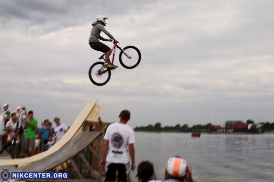 Соревнования по фанджампингу (прыжкам в воду с велосипедом), посвященные 25-й годовщине независимости Украины, прошли в Херсоне.