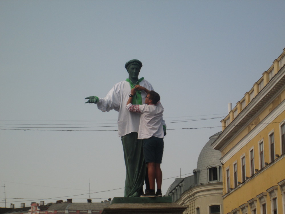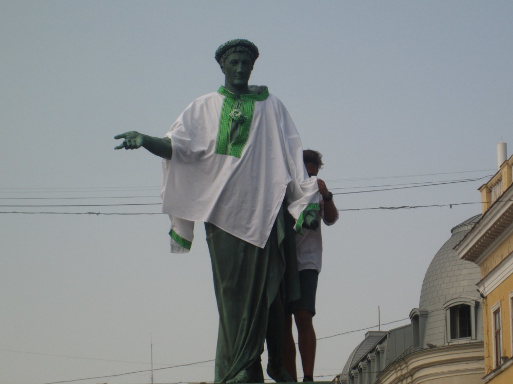 Сегодня, 24 августа, в Одессе в ходе празднования Дня независимости Украины памятник Дюку одели в вышиванку.