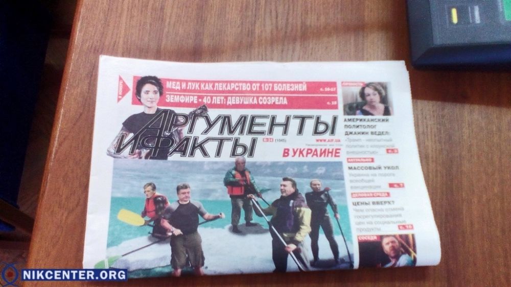 Газету "Аргументы и факты" с размещенной в ней статьей, содержащей информацию, порочащую депутата херсонского горсовета от БПП Олега Романюка нашли на своих местах депутаты горсовета, пришедшие на проходящую сейчас сессию.