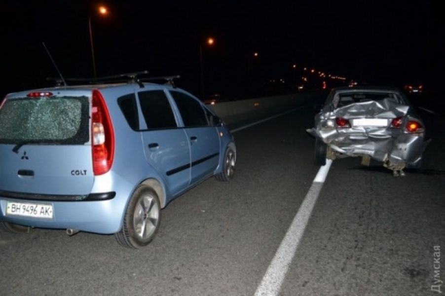 По словам очевидцев, двое мужчин переходили дорогу в неположенном месте, сообщает odessa.net.ua. Водитель автомобиля Mitsubishi Colt стал резко тормозить, но это не помогло – нарушители были сбиты. Следовавшая за ним Хонда тоже попыталась остановиться, но в нее сзади врезался микроавтобус Фольксваген.