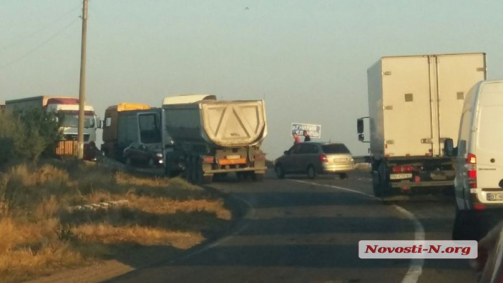 Из-за столкнувшихся на мосту автомобилей на трассе «Николаев-Уляьновка» возникла огромная пробка.