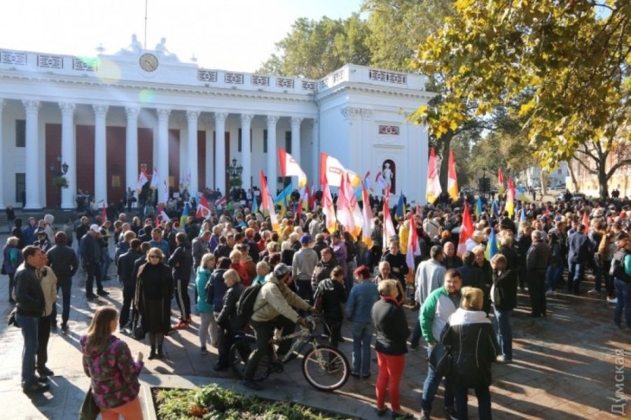 Сегодня под одесской мэрией вновь собрались активисты «Антитрухановского майдана» и приверженцы мэра.