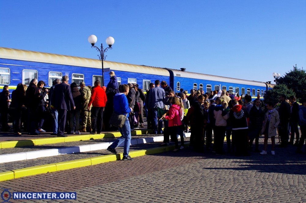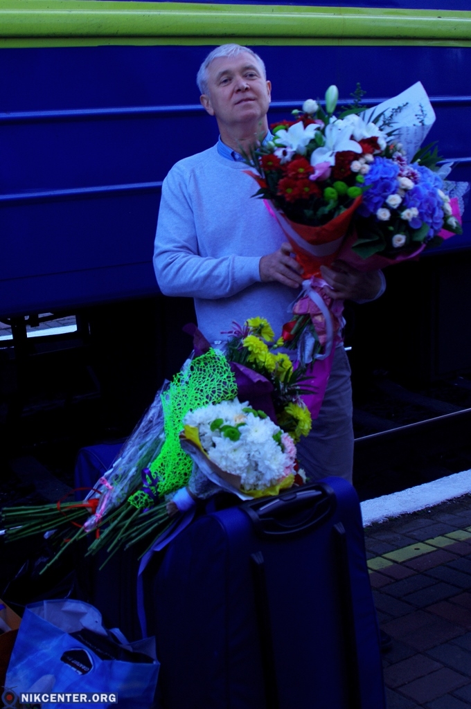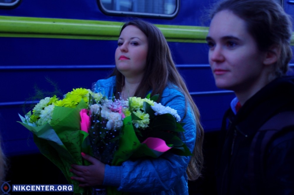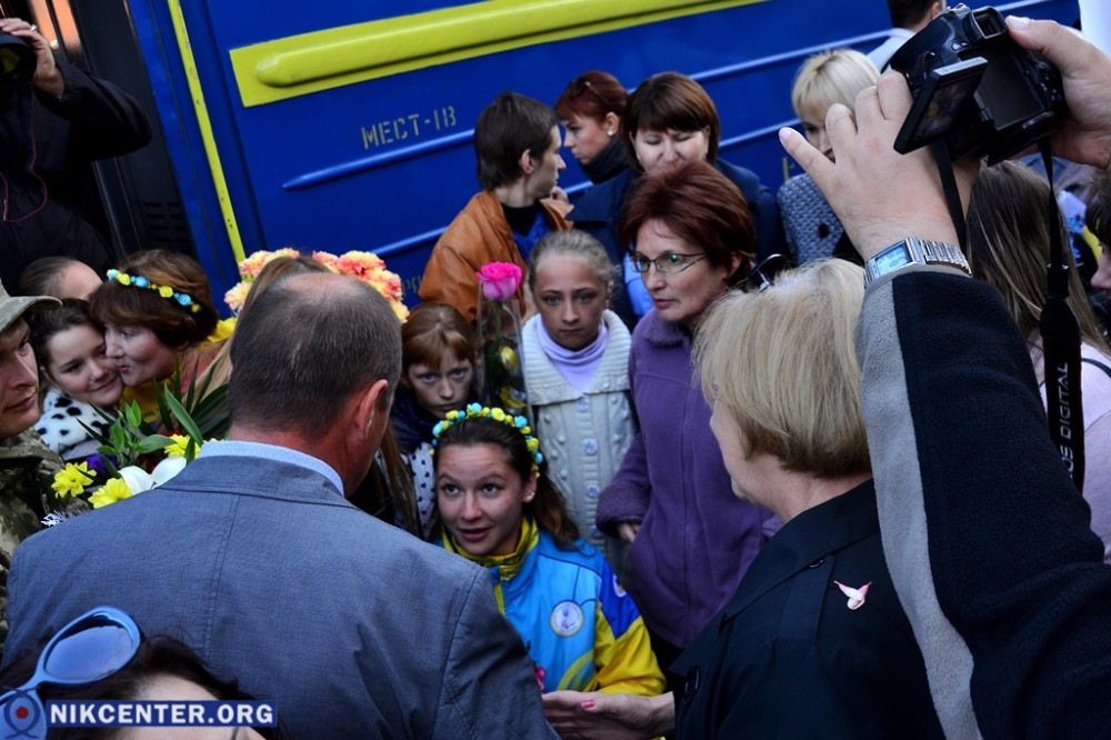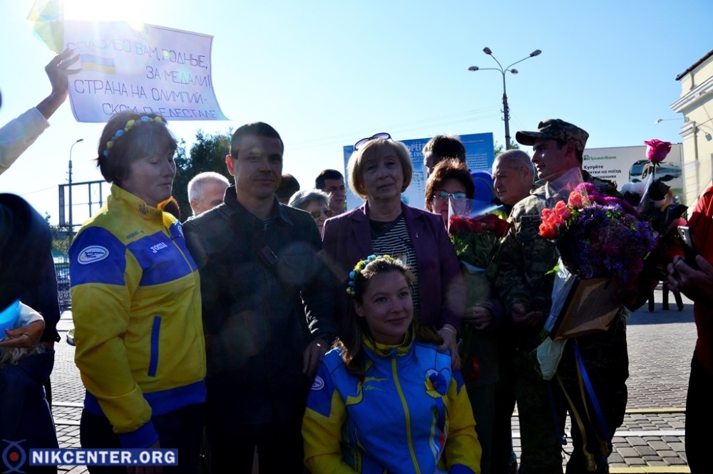 На железнодорожном вокзале поезд, на котором спортсменка и ее тренер Стелла Бенедик приехали в родной город встретили глава облгосадминистрации Андрей Гордеев, Херсонский городской голова Владимир Миколаенко, руководители и воспитаники городской спортшколы № 6, которую закончила Елизавета.