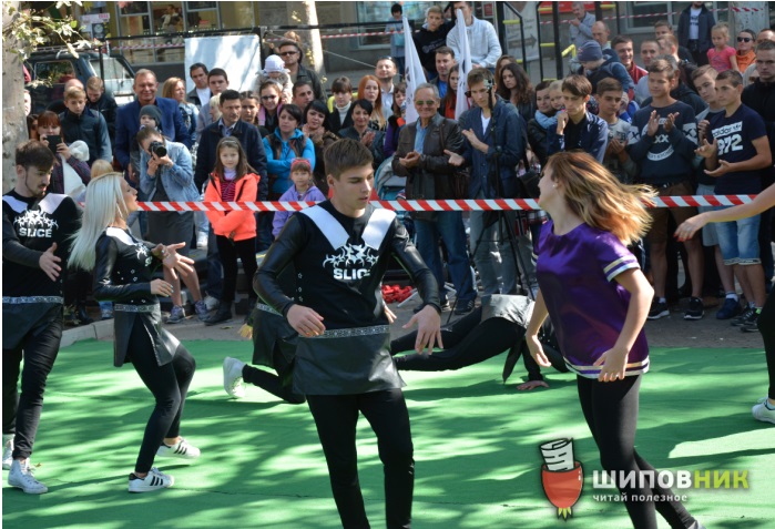 Сразу же после выступления мэра, на площадку вышли ребята из клуба Slice, показав несколько зрелищных танцевальных номеров.