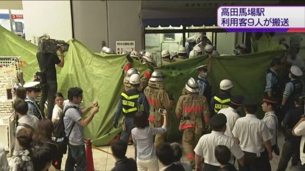 Несколько человек почувствовали себя плохо на станции "Такаданобаба", которая расположена в спальном районе пригорода Синдзбуку. Они жаловались. что им резко стало нечем дышать, запершило в горле и помутнело в глазах. К месту происшествия направили кареты скорой помощи.