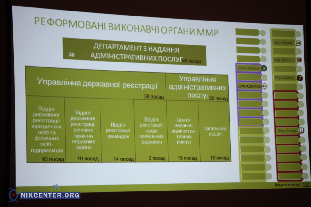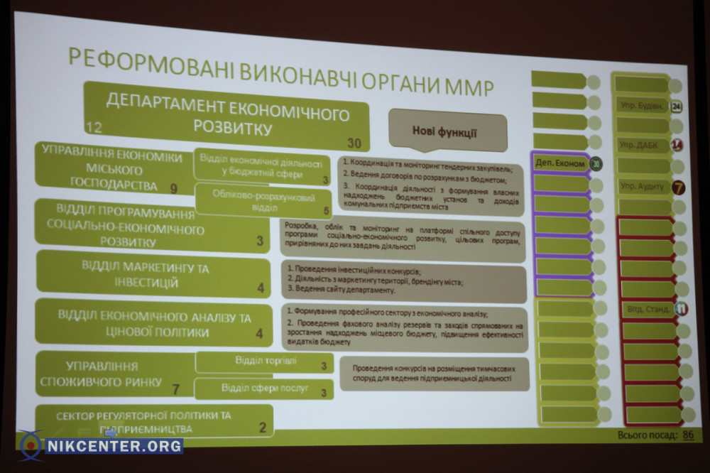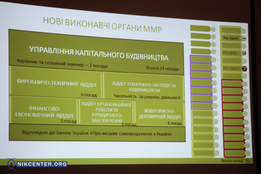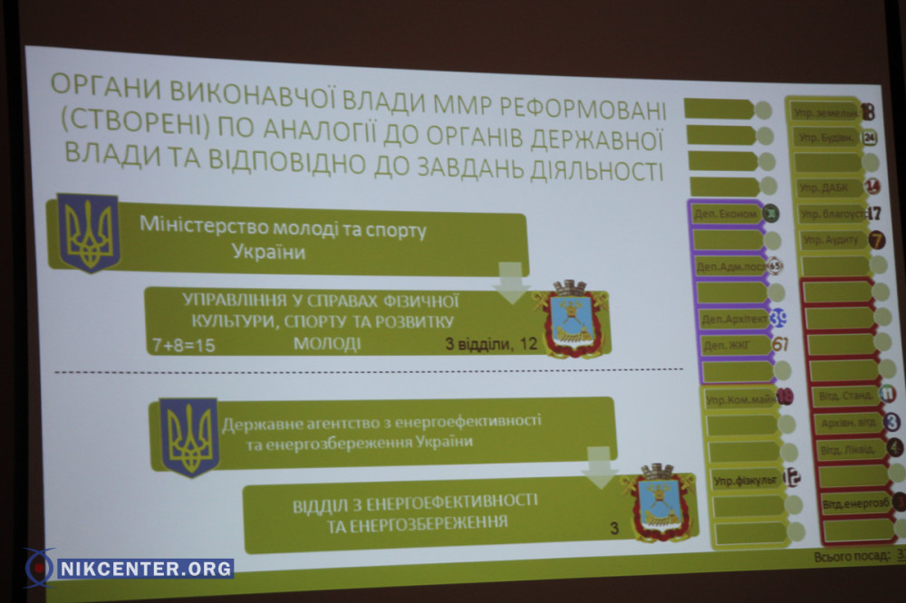 Начальник управления экономики и инвестиций Николаевского горсовета Александр Олефир, который является основным разработчиком новой структуры отметил, что увеличение штата объясняется новой реформой децентрализации власти в Украине, в рамках которой на местное самоуправление были возложены новые функции.