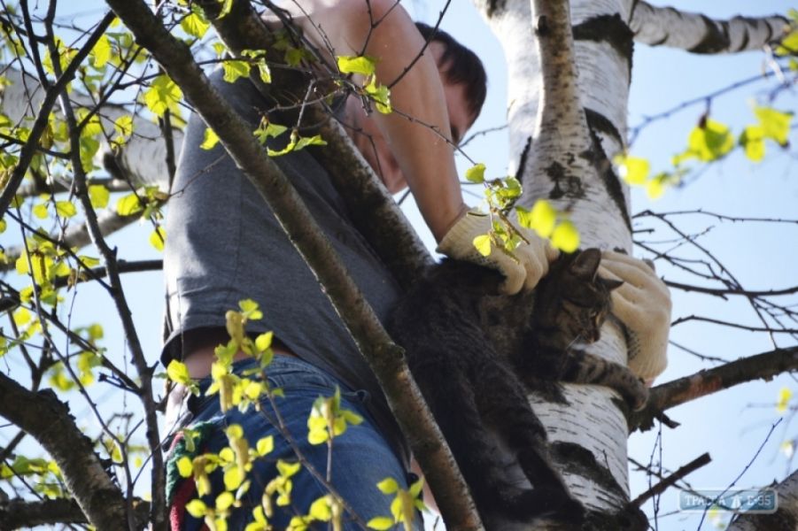 Одесские спасатели сняли с дерева мужчину, который залез туда спасать кошку