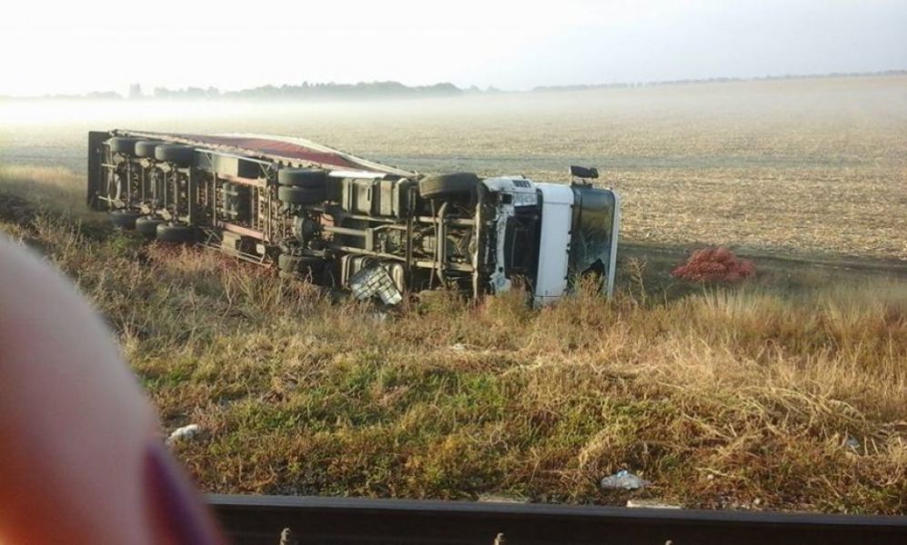 Авария: возле Первомайска Николаевской области перевернулась фура с луком