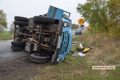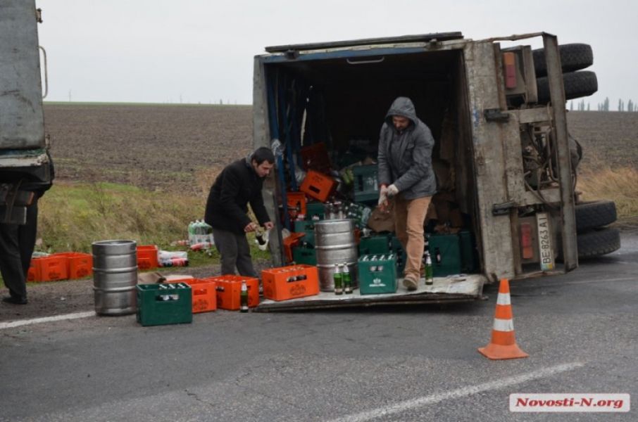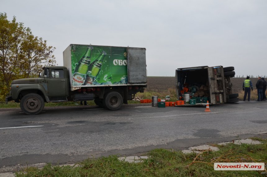 Ночью в субботу, 15 октября, на трассе «Николаев-Ульяновка», в районе с. Гурьевка перевернулся грузовик ЗиЛ-130 с грузом пива.