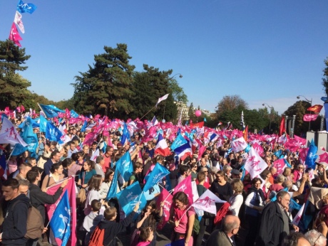 Протестующие требуют вернуть вопрос права на брак для сексуальных меньшинств в поле публичной дискуссии перед президентскими выборами, которые состоятся во Франции в следующем году.