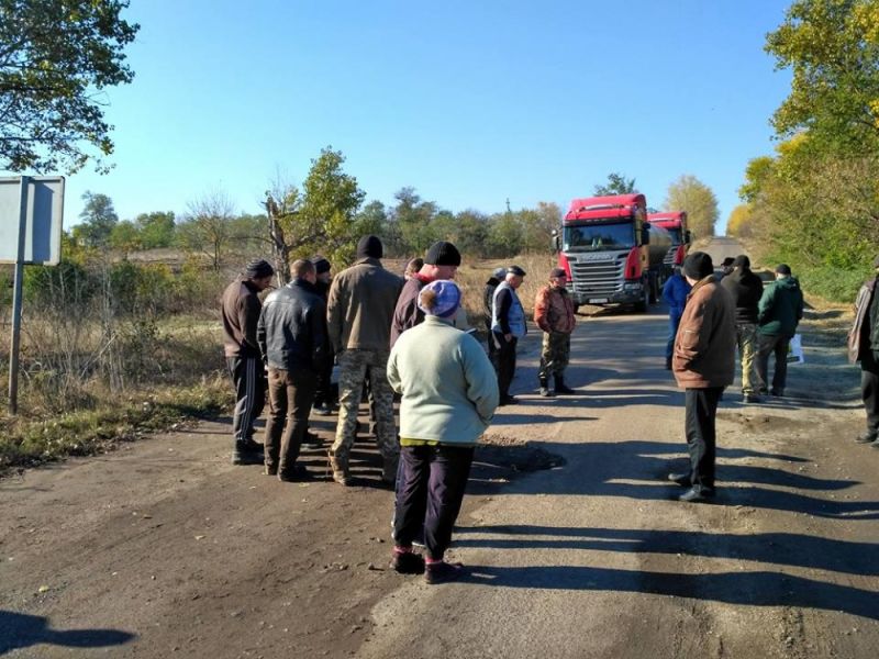 Жители трех сел в Первомайском районе перекрыли дорогу, чтобы привлечь внимание завода «Кернел» и общественности к проблеме с ремонтом трассы.