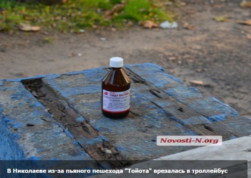 В Николаеве из-за пешехода, напившегося настойки боярышника, Тойота врезалась в троллейбус