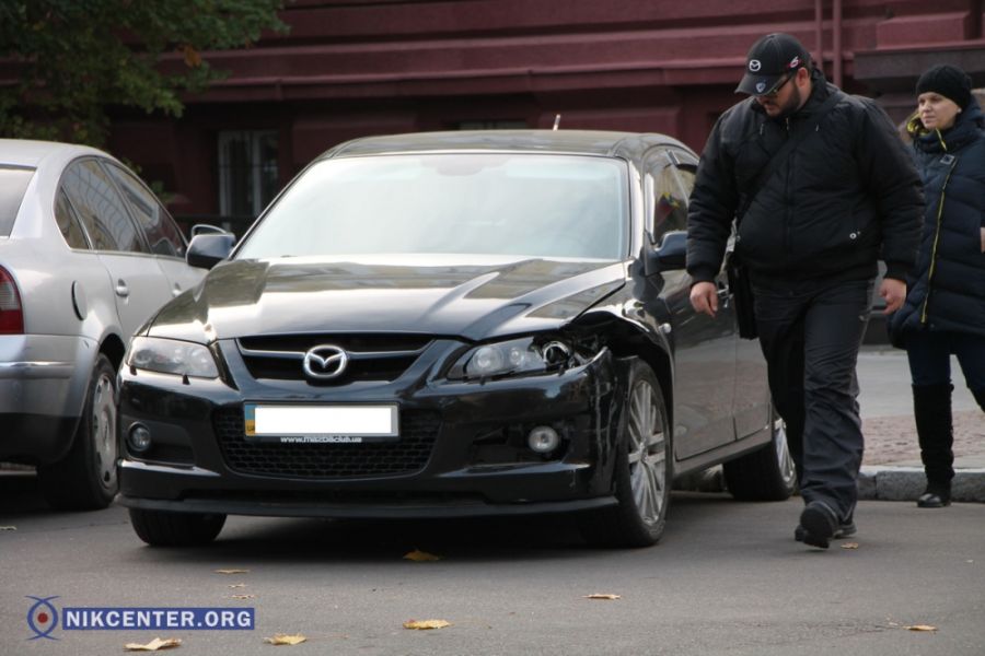 Сегодня, 26 октября, около 16.00, в Николаеве возле здания областной полиции, на пересечении ул. Декабристов и ул. Спасская, Mazda 6 столкнулась с полицейской «Ладой».