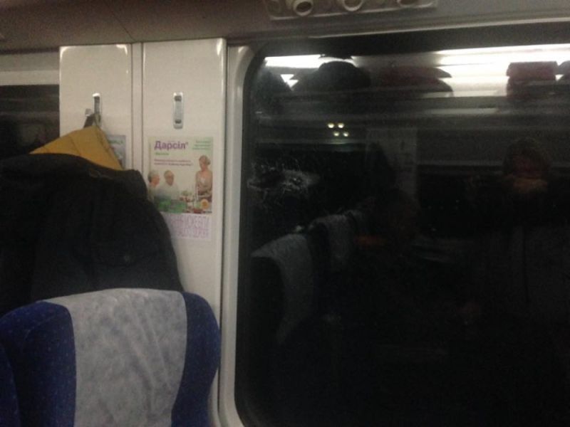 "Где-то на границе Харьковской и Полтавской областей выстрел. Трескается соседнее со мной окно. По вагону стреляли с улицы… Стреляли по нашему, седьмому, и по четвертому вагонам. Слава Богу, все живы-здоровы. И, если честно, я не уверена, что это 5.45 (калибр, мм., — ред.) — пули не видела", — сообщила она, отметив, что бойцы считают, что у патрона был именно такой калибр.